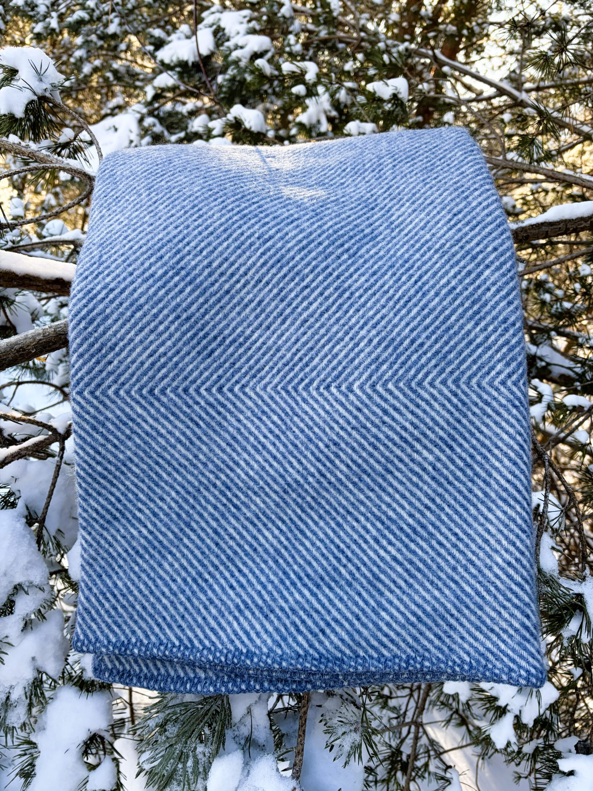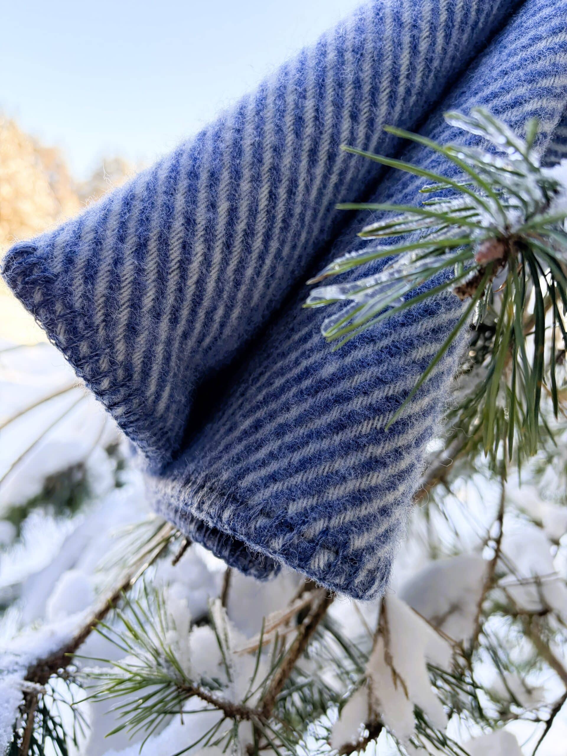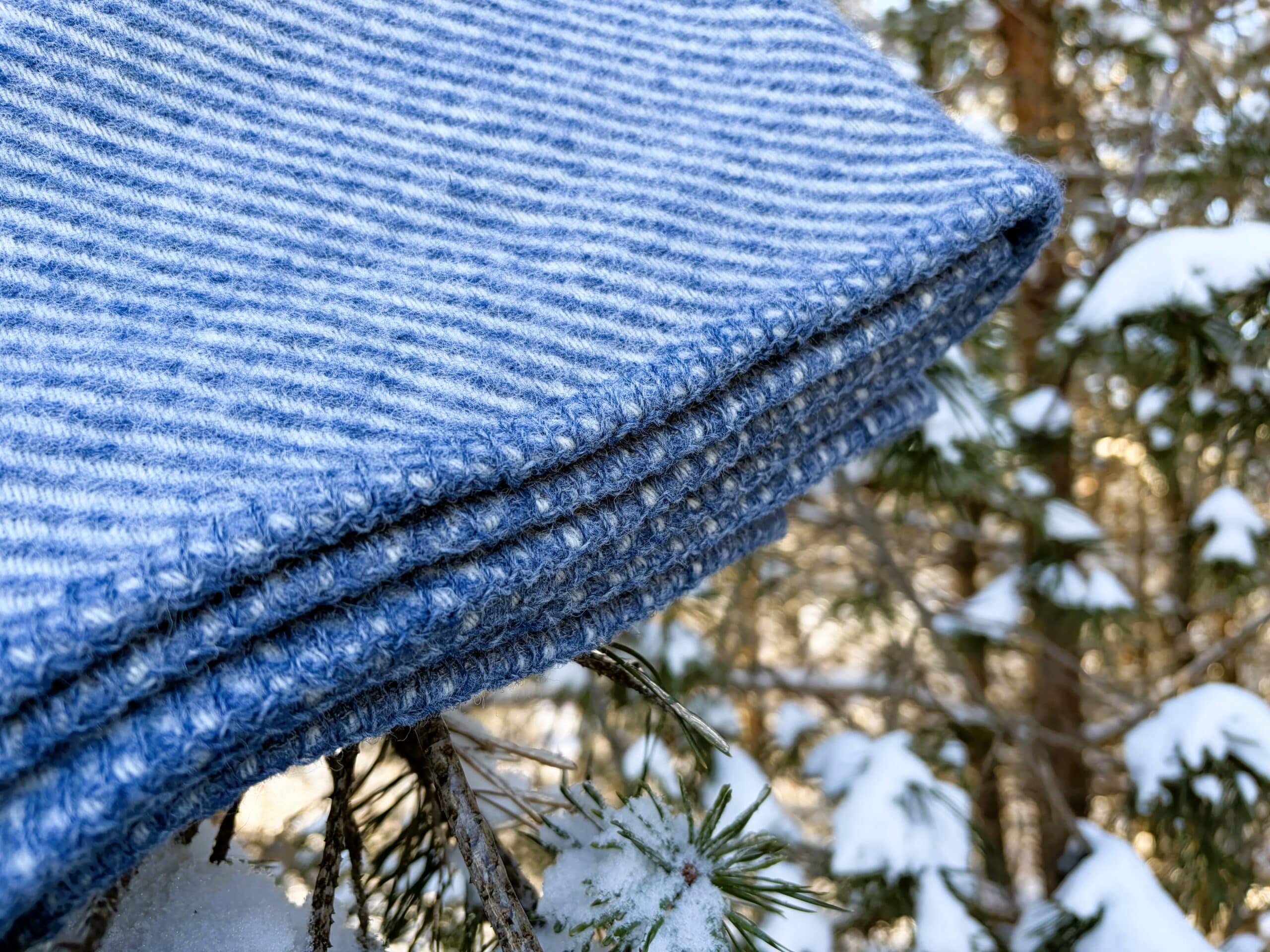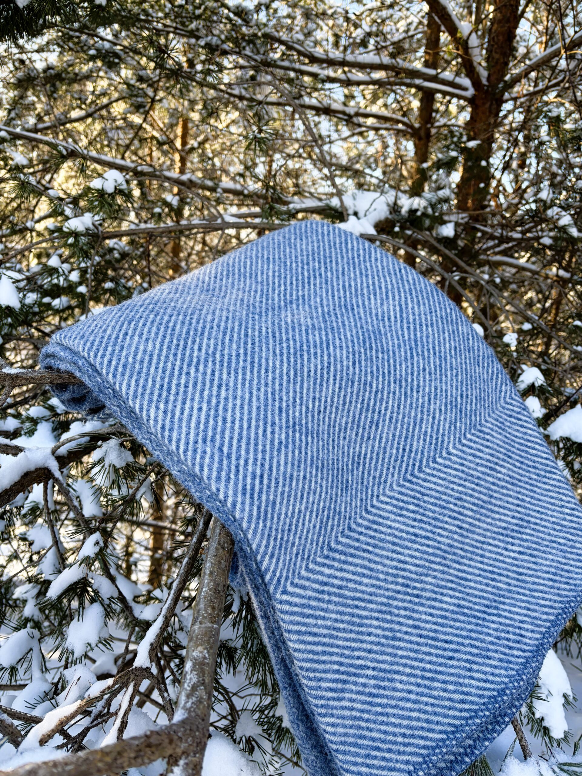 Šis mėlynos spalvos vilnonis pledas išsiskiria subtiliu įstrižų linijų pynimu, kuris suteikia audiniui gylio ir elegantiškos tekstūros. Ramus mėlynas atspalvis kuria jaukią, harmoningą atmosferą ir lengvai dera prie įvairių interjero sprendimų – nuo modernaus iki klasikinio.