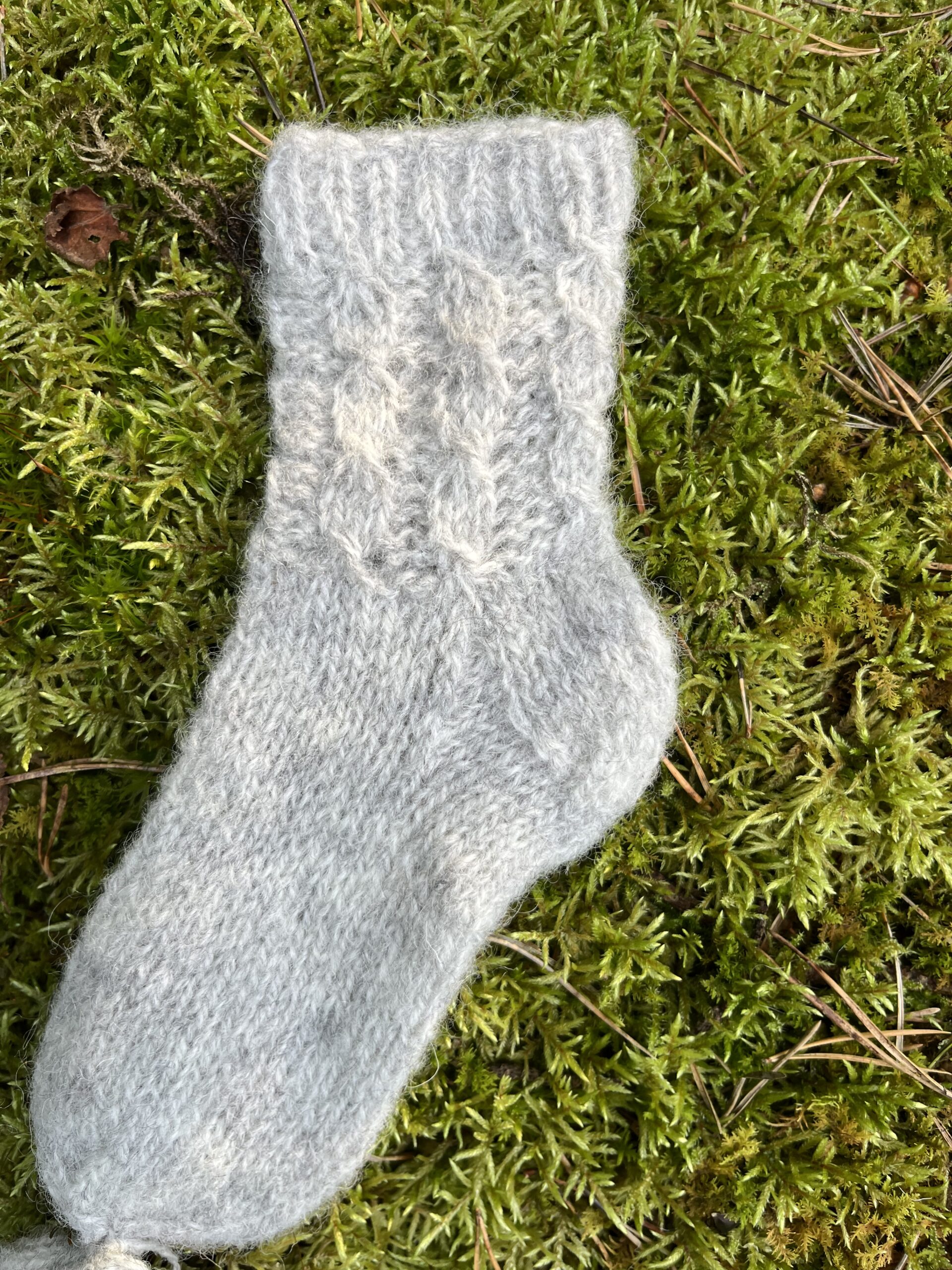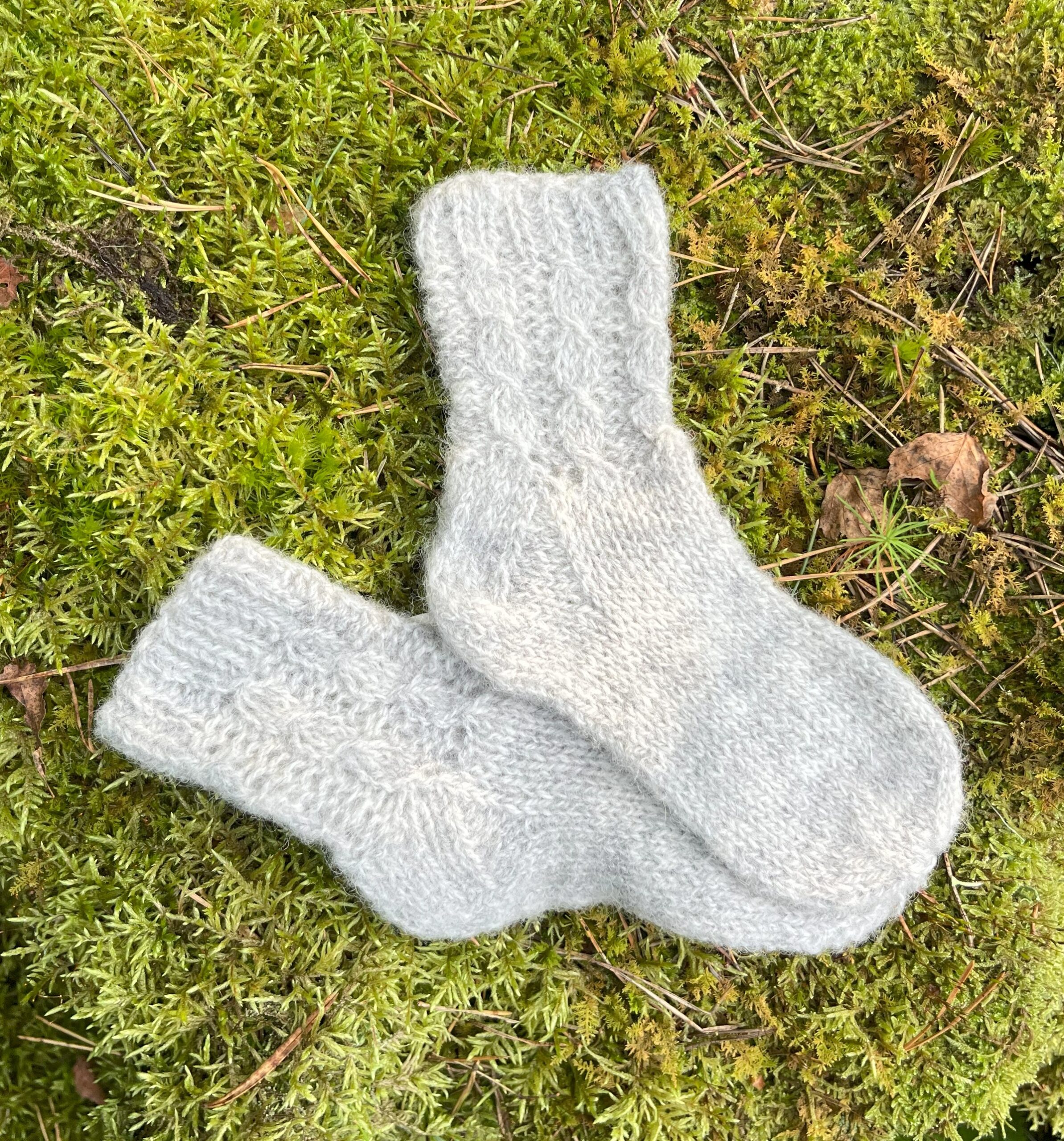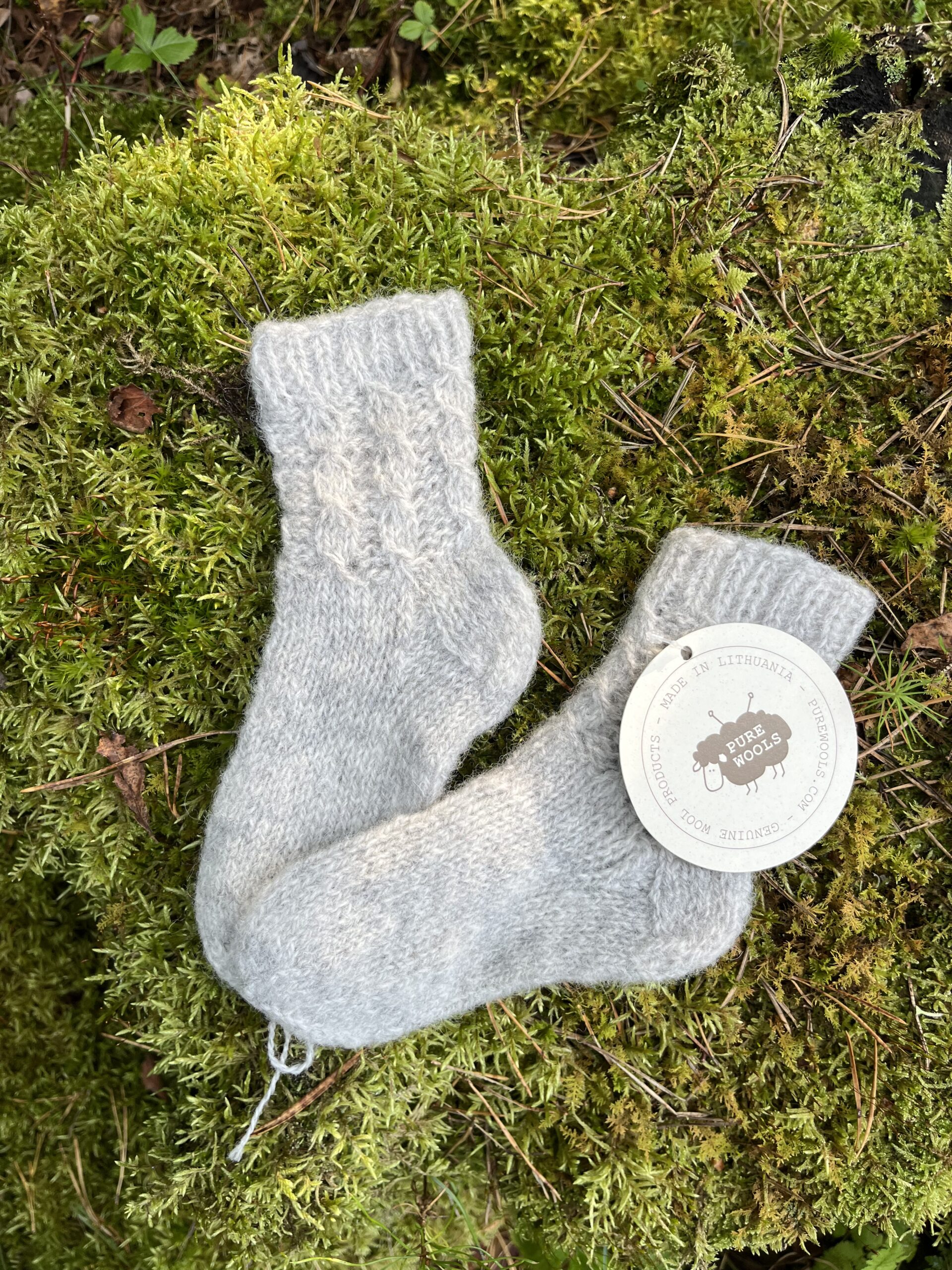 Pilkos spalvos atspalvis ir subtilus raštas suteikia kojinytėms klasikinio paprastumo bei natūralumo. Tai – ne tik praktiška aprangos detalė, bet ir miela dovana vaikui, simbolizuojanti šilumą, rūpestį ir natūralumą.